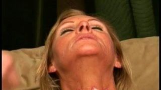 blonde with long hair masturbes cock